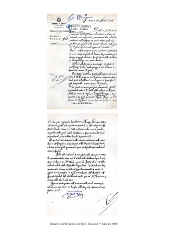 Relazione del Brigadiere dei Vigili Urbani del 14 febbraio 1916