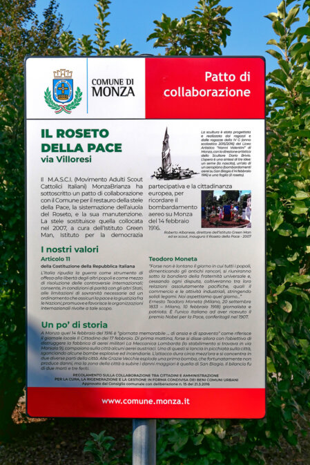 Il rinnovato Roseto della Pace è il frutto del Patto di Collaborazione con il Comune di Monza.